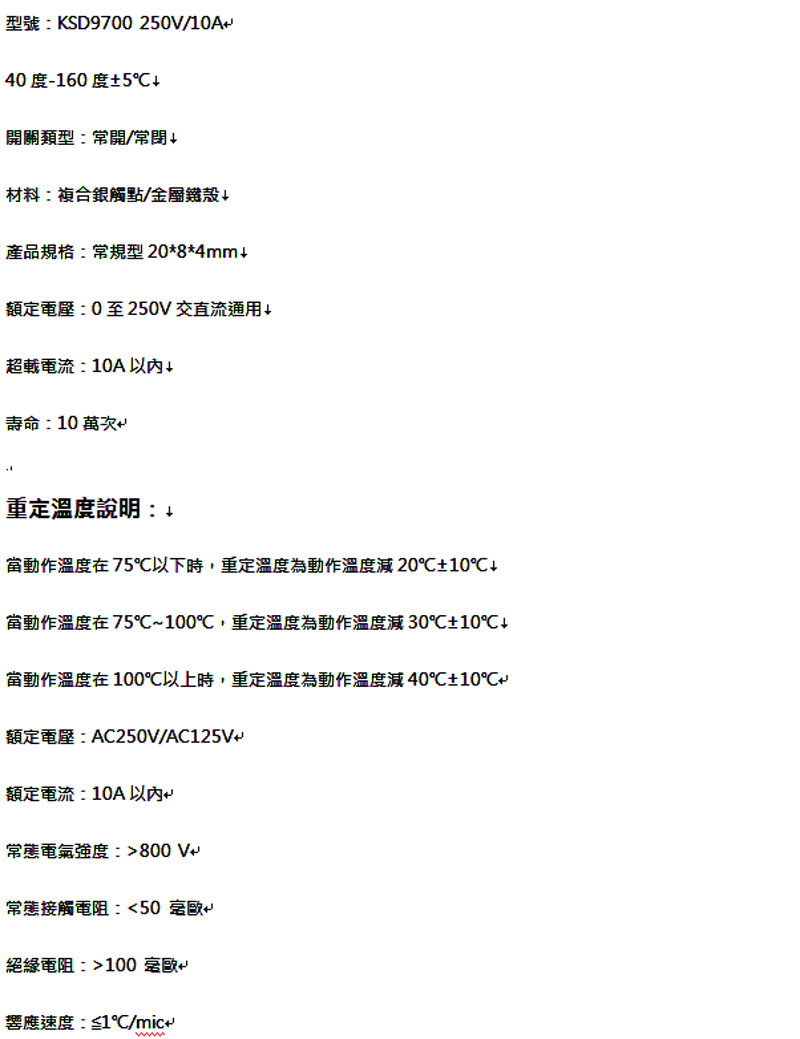 KSD9700-10A金屬殼-75度-常閉溫控開關