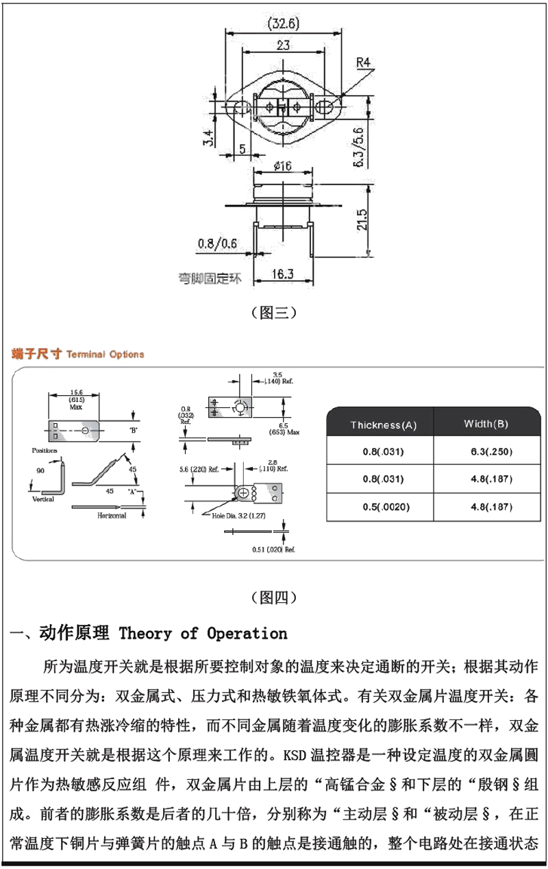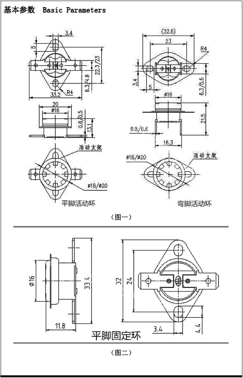 KSD301溫控開關平腳固定環16A250V-溫控器開關