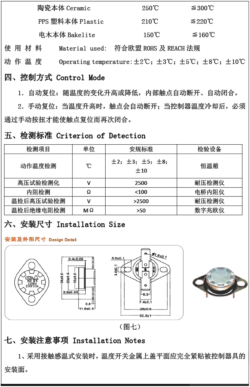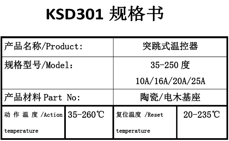 KSD301-陶瓷-平腳-16A-常閉-125度
