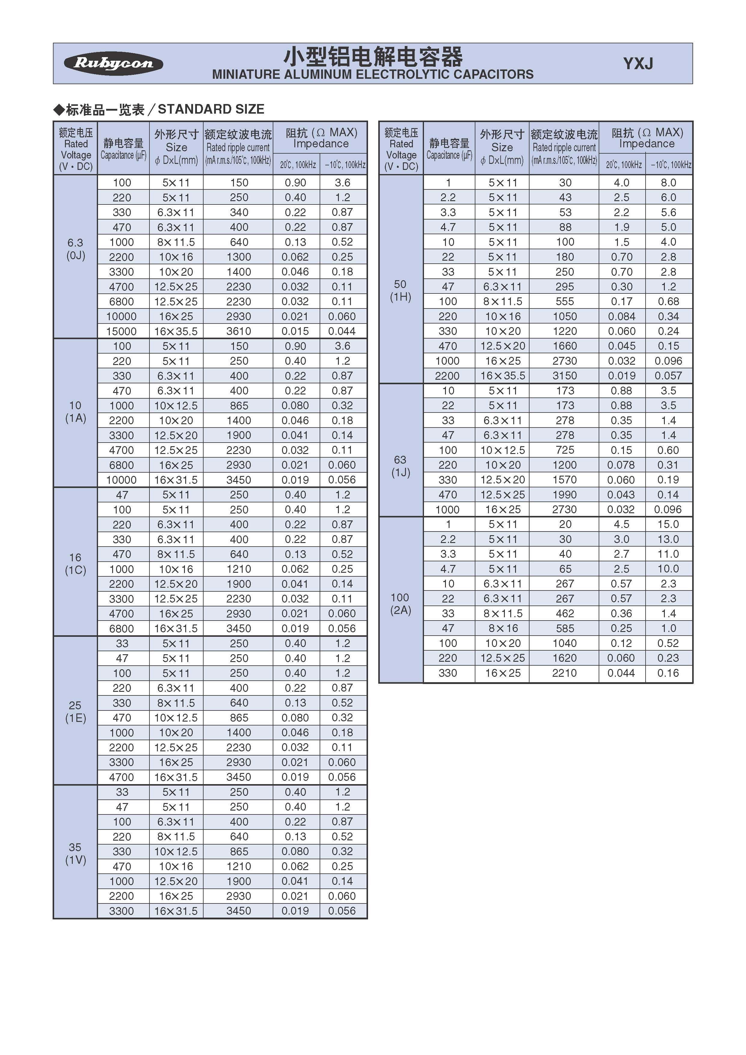 Rubycon_YXJ系列 電解電容