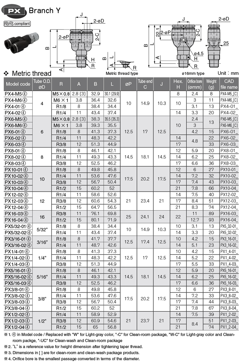 PISCO氣動快速三通接頭Y型-接管口徑4mm