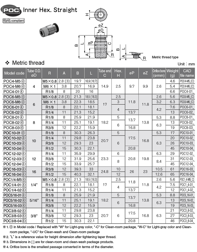 PISCO金屬快速接頭 外徑:4mm 螺紋:M5