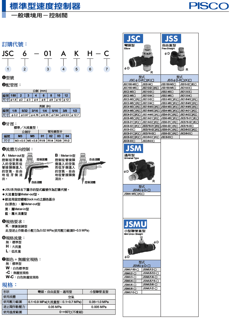PISCO_節流閥 6mm 螺紋:3/8(約16.5mm)