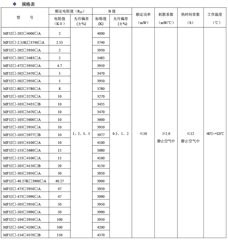 NTC 熱敏電阻 負溫/5KΩ ±1%