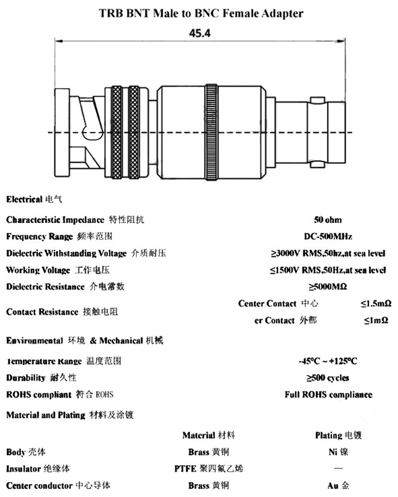 三同軸BNC公轉BNC母-內屏蔽與外屏蔽不相通