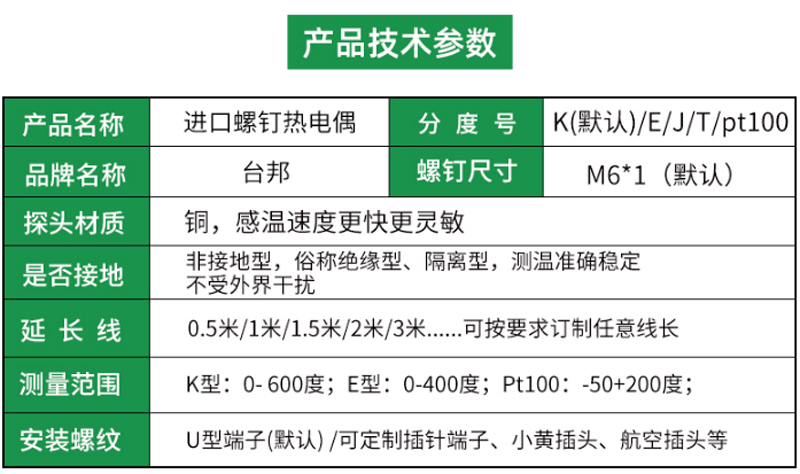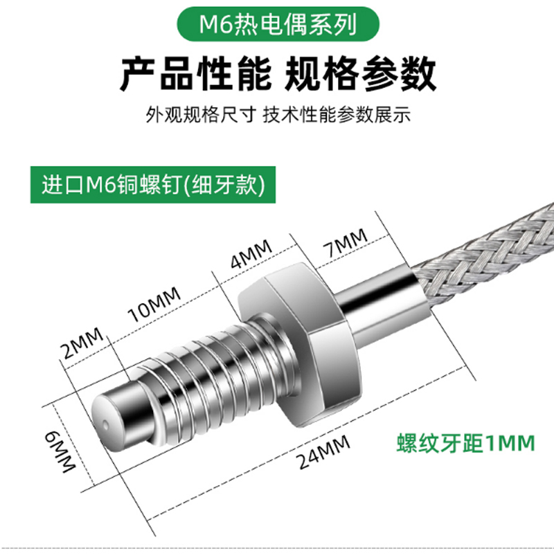 PT100-進口M6公制(粗牙)-2米線-3線制