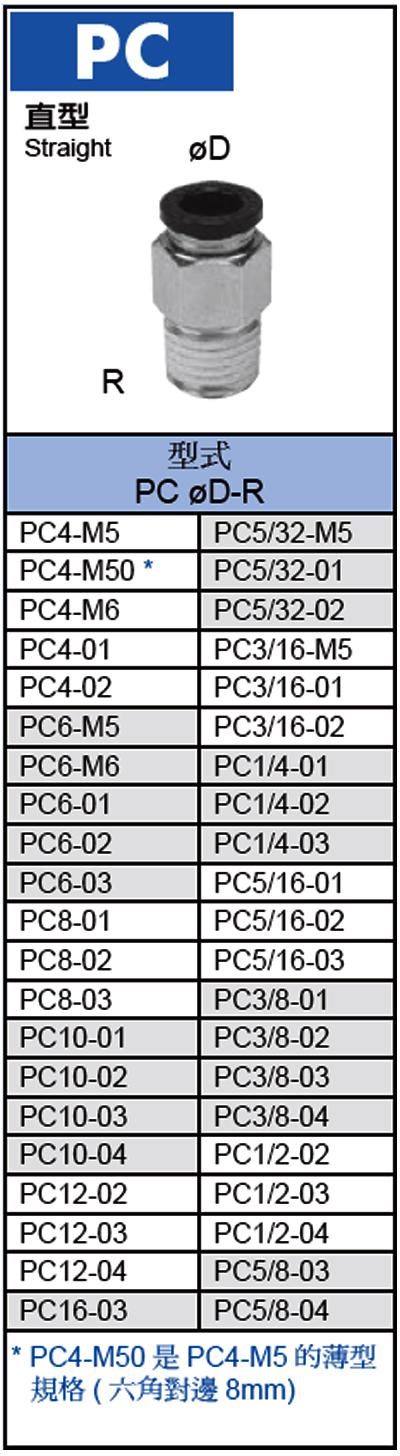 PISCO金屬快速接頭 外徑:10mm螺紋:1/4(約12.8mm)
