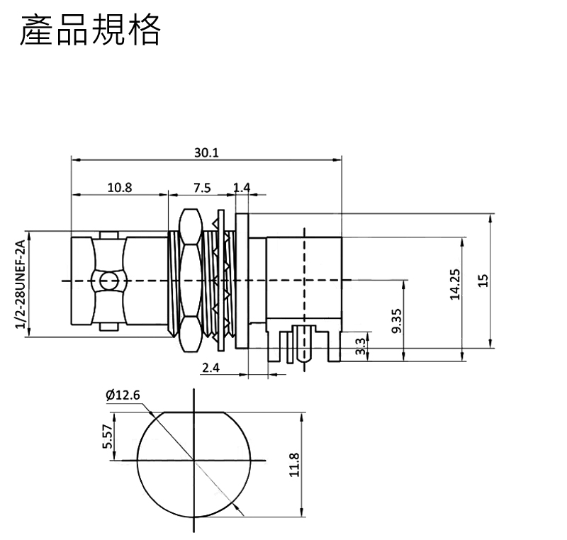 TRB/三同軸/三爪BNC/Q9母-PCB面板固定底座-彎插