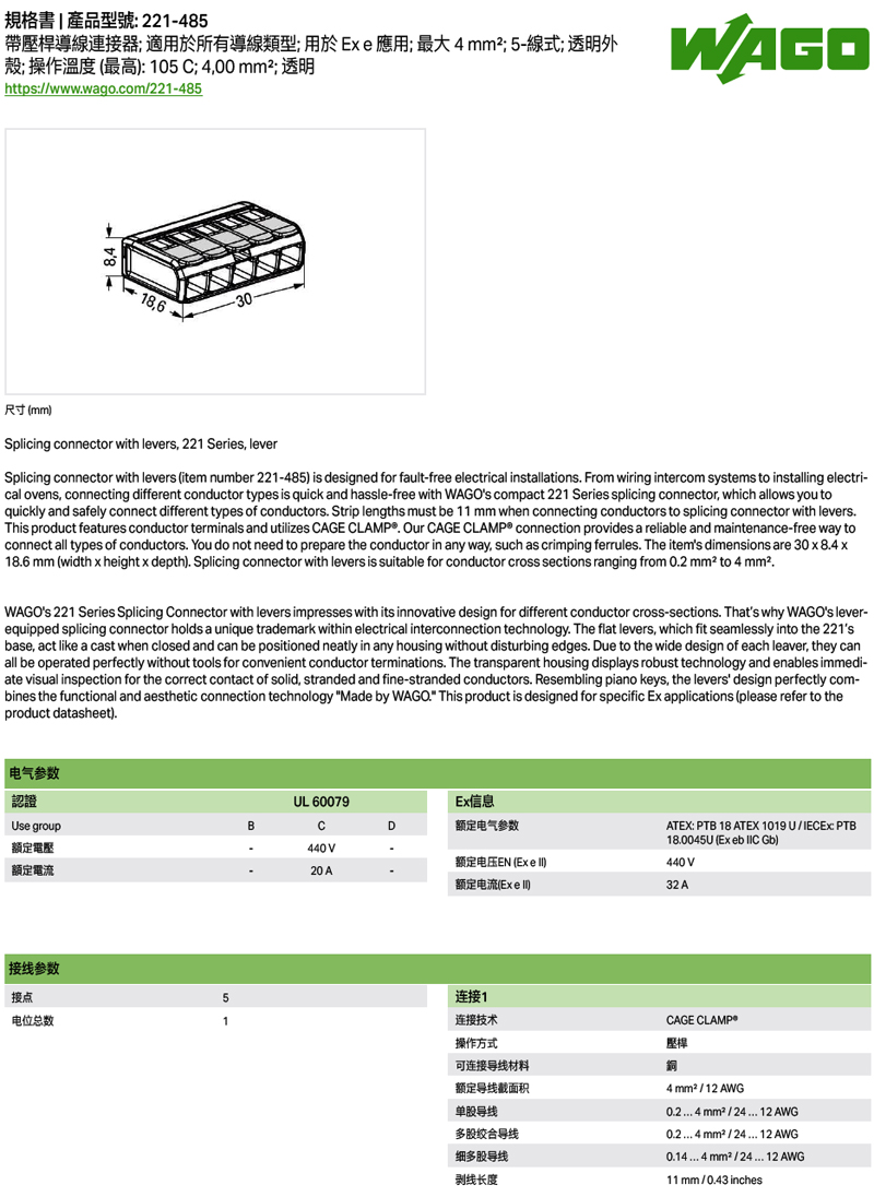 快速接頭 5孔 白色透明 4mm2 AWG24-12 440V/32A