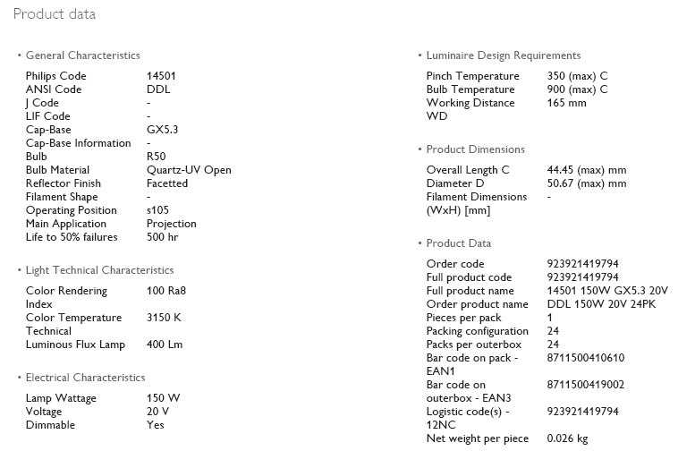 Philips’ halogen reflector lamps offer the ideal no-fuss solution for a wide variety of medical, projection and scientific illumination systems. Their proven reliability makes them ideal for retrofit installations. The burners are precisely aligned for optimal light performance. Dichroic reflectors ensure heat dissipation towards the back of the optical system, which helps the optical system remain within temperature limits. A special blue-filter version blocking out unwanted light above 700 nm is available for dental curing applications. In addition, you get all the proven advantages of halogen technology such as a CRI of 100 – the same as natural sunlight for the best possible color rendering. Halogen lamps also create a comfortable warm white light, and they maintain their high lumen output with almost no lumen reduction throughout their lifetime.