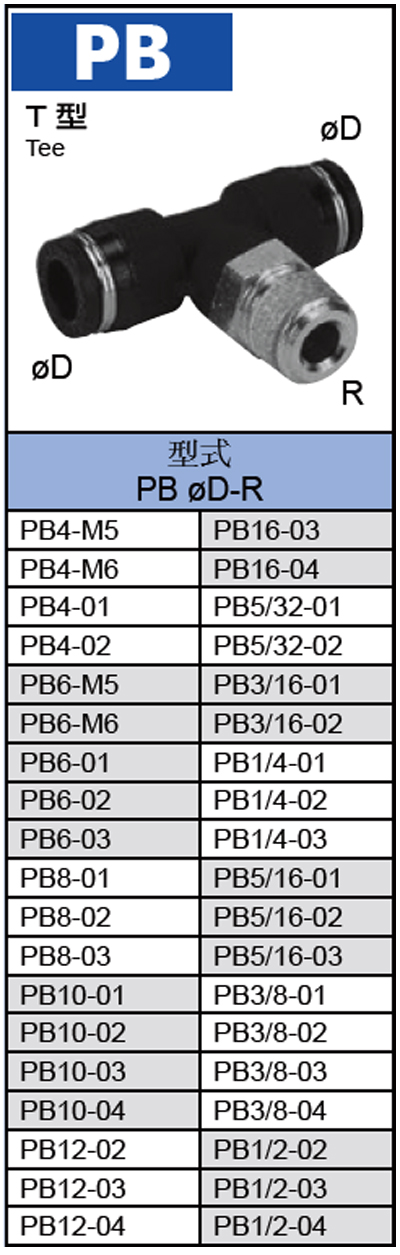 PISCO_PB系列 T型正三通氣動接頭