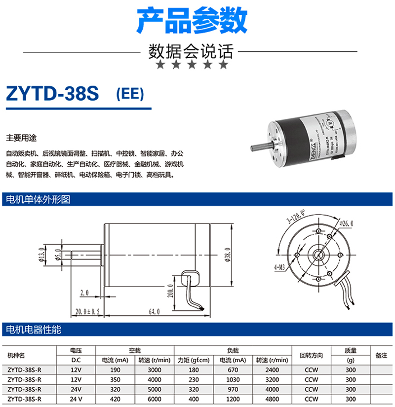 正科高轉速有刷直流電機 24V 11000轉 7W馬達 長64mm直徑38mm