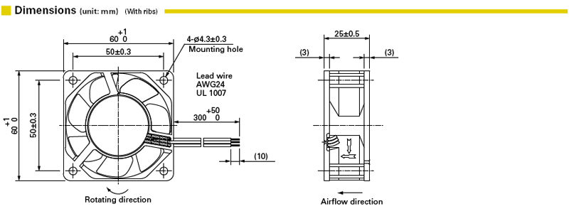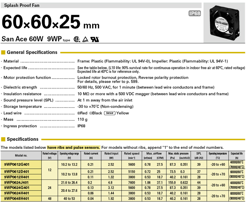 Sanyo 滚珠 DC24V 3線式風扇 0.2A 4.8W 6025