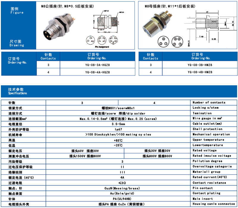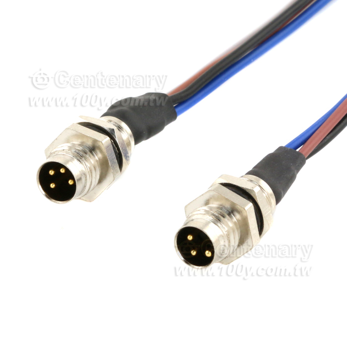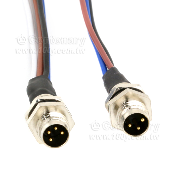 M8法蘭公座4芯穿板式面板連接器傳感器焊接帶綫防水20CM