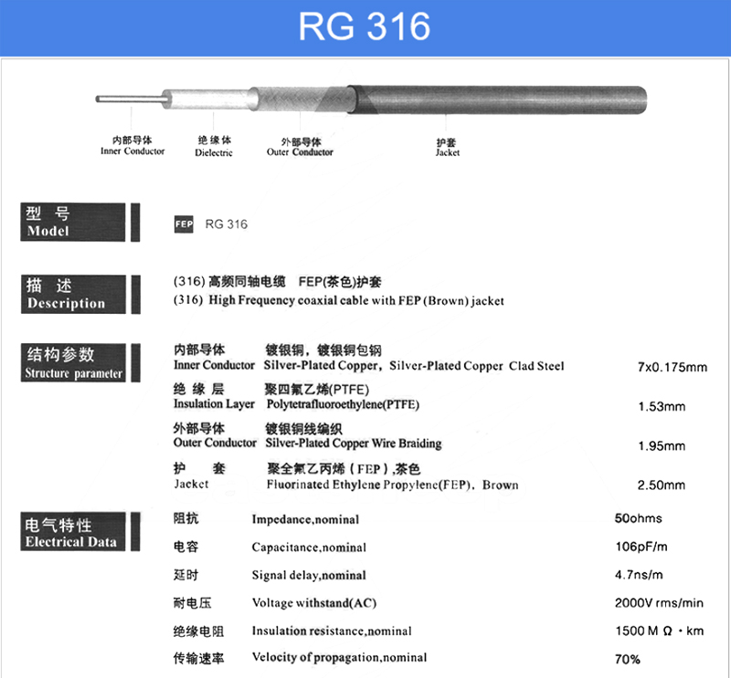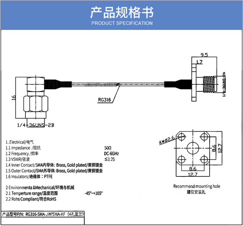 SMA-JW+SMA-KF(4孔)-RG316-0.8M-6G