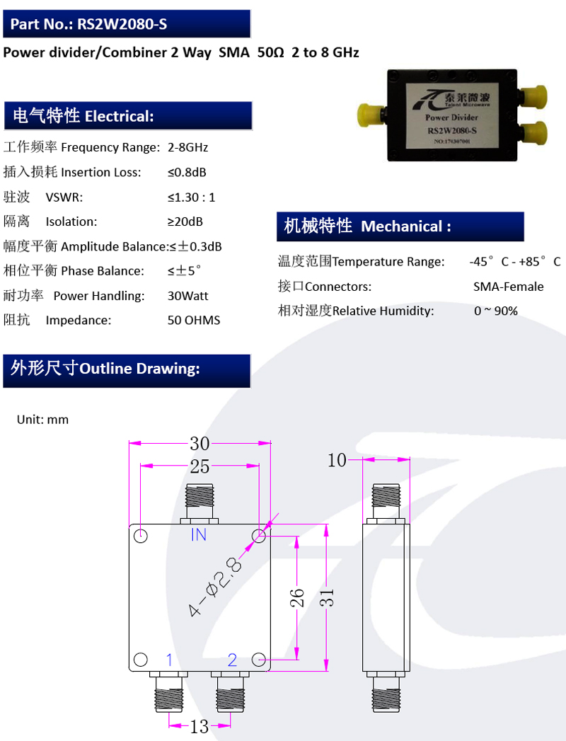 SMA型一分二功分器