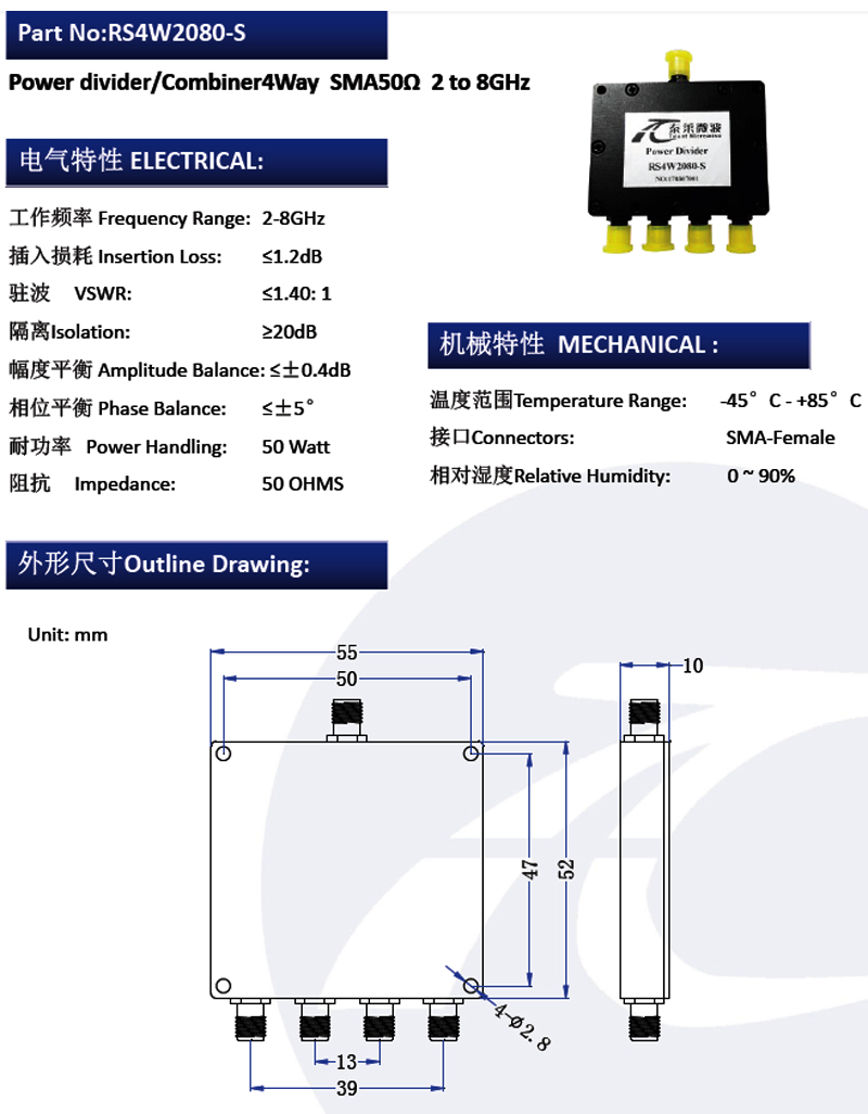 SMA型一分四功分器