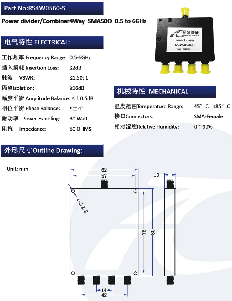 SMA型一分四射頻功分器