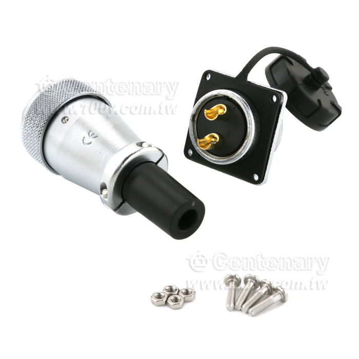 2P公插頭+2P方形法蘭公插座