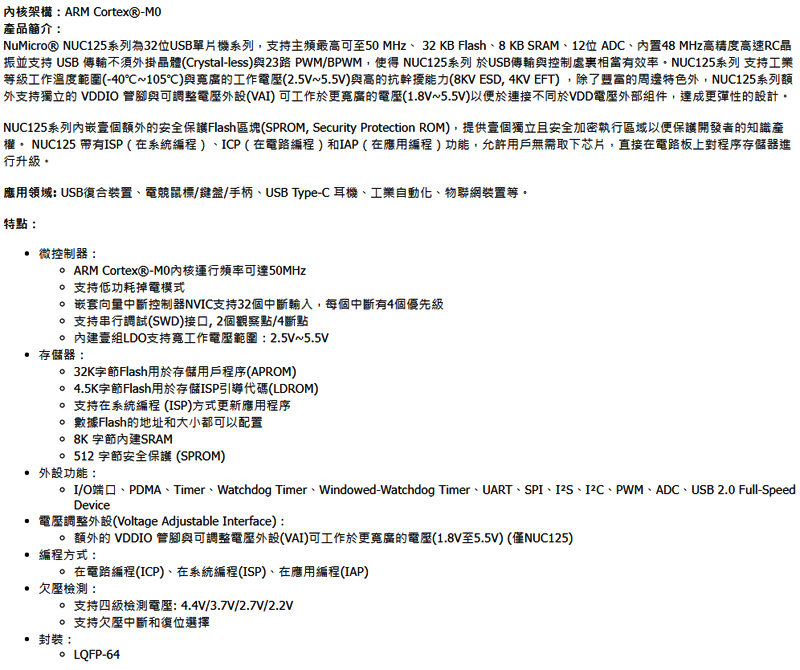 nuvoton新唐ARM Cortex-M單片機