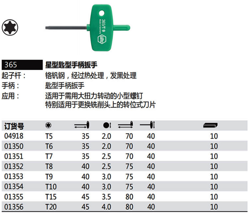 wiha 365 匙型旗型手柄扳手 T8*40mm