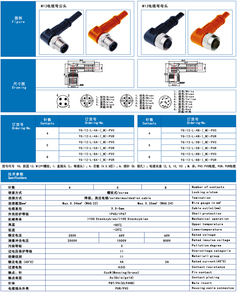 YG-12-L系列  M12傳感器彎頭防水連接器