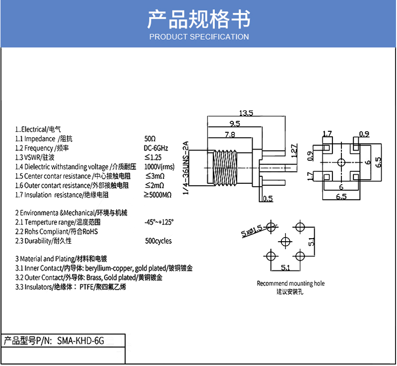 射頻連接器 PCB板固定天線底座 總長: 13.5mm