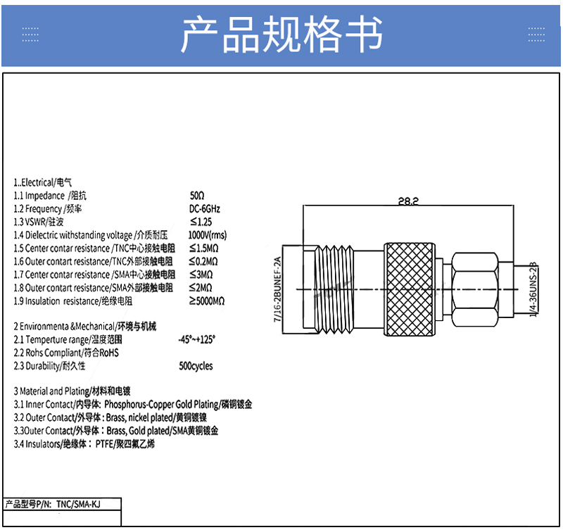 射頻轉接器TNC母(孔)轉SMA公(針) SMA/TNC-JK