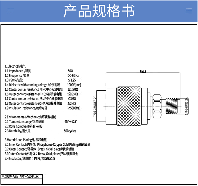 射頻轉接器SMA母(外螺內孔) 轉 TNC內螺紋內孔