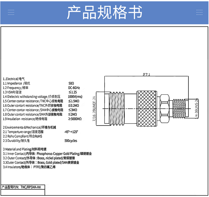 射頻轉接器 TNC/RPSMA-KK