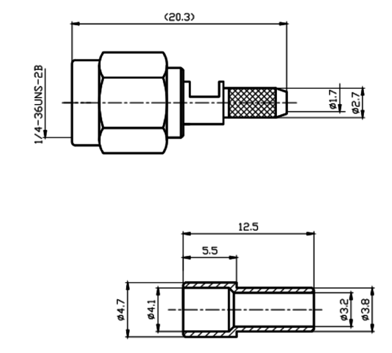 純銅射頻連接器接頭SMA內螺內針壓接-公頭尾部開窗