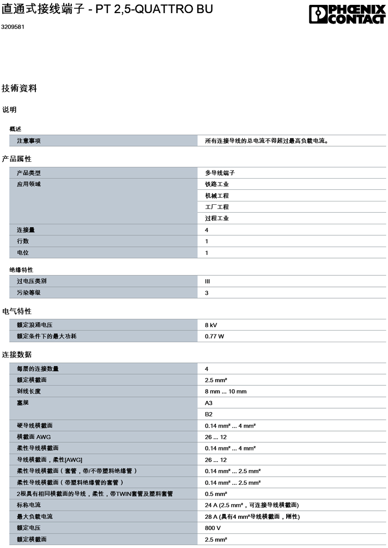 PT2,5-QUATTRO-BU 直通式接線端子 12-26AWG