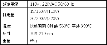 ●使用快熱開關時, 能焊接大型端子介面、電纜,使用標準開關,能焊接一般PCB元件。