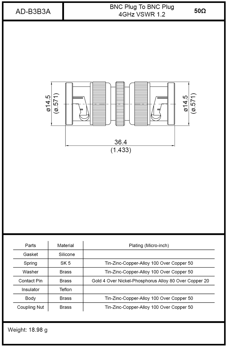BNC Plug To BNC Plug 4GHz