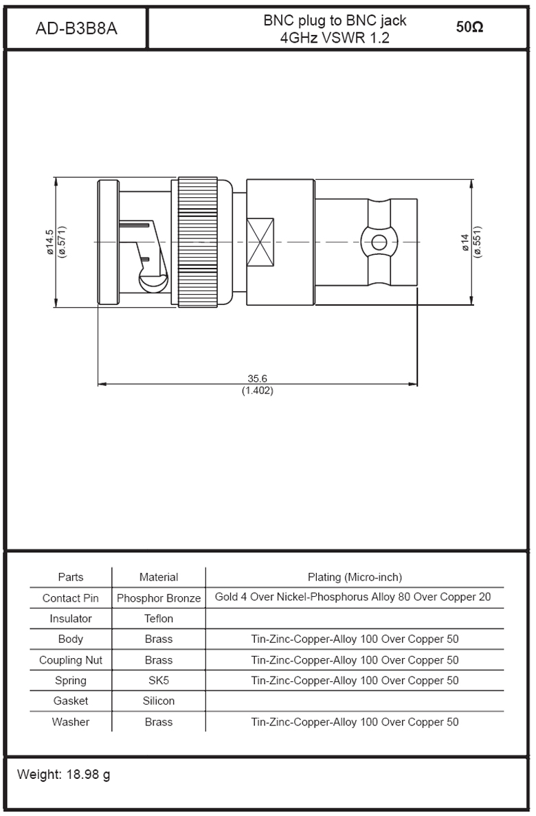 BNC Plug To BNC Jack 4GHz