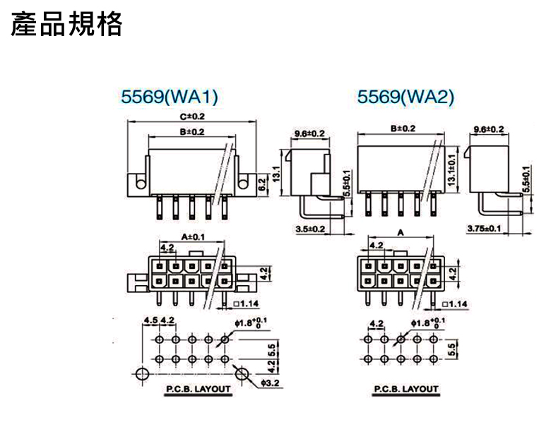 5569雙排-AW-4.2mm-8P -針座-90°-無耳