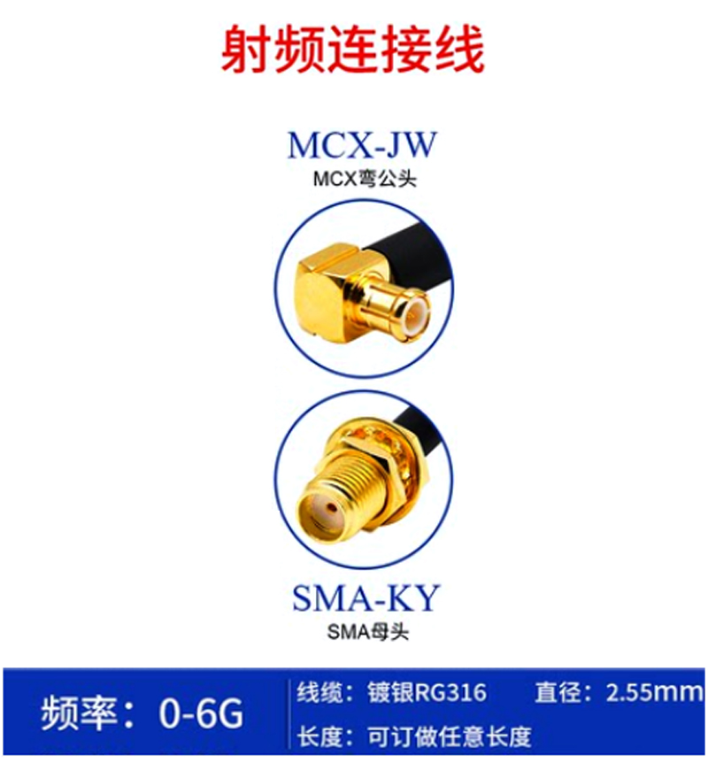 RG316射頻轉接跳線MCX彎公轉SMA母頭穿牆