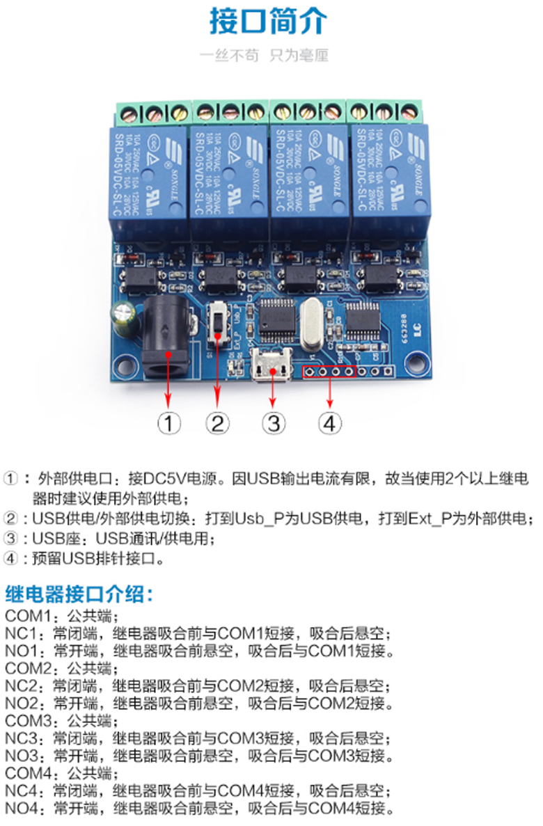 LCUS-4 USB繼電器模塊5V USB智能控制開關