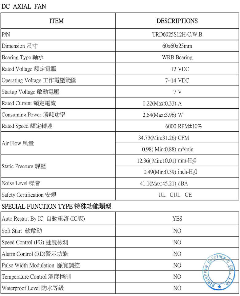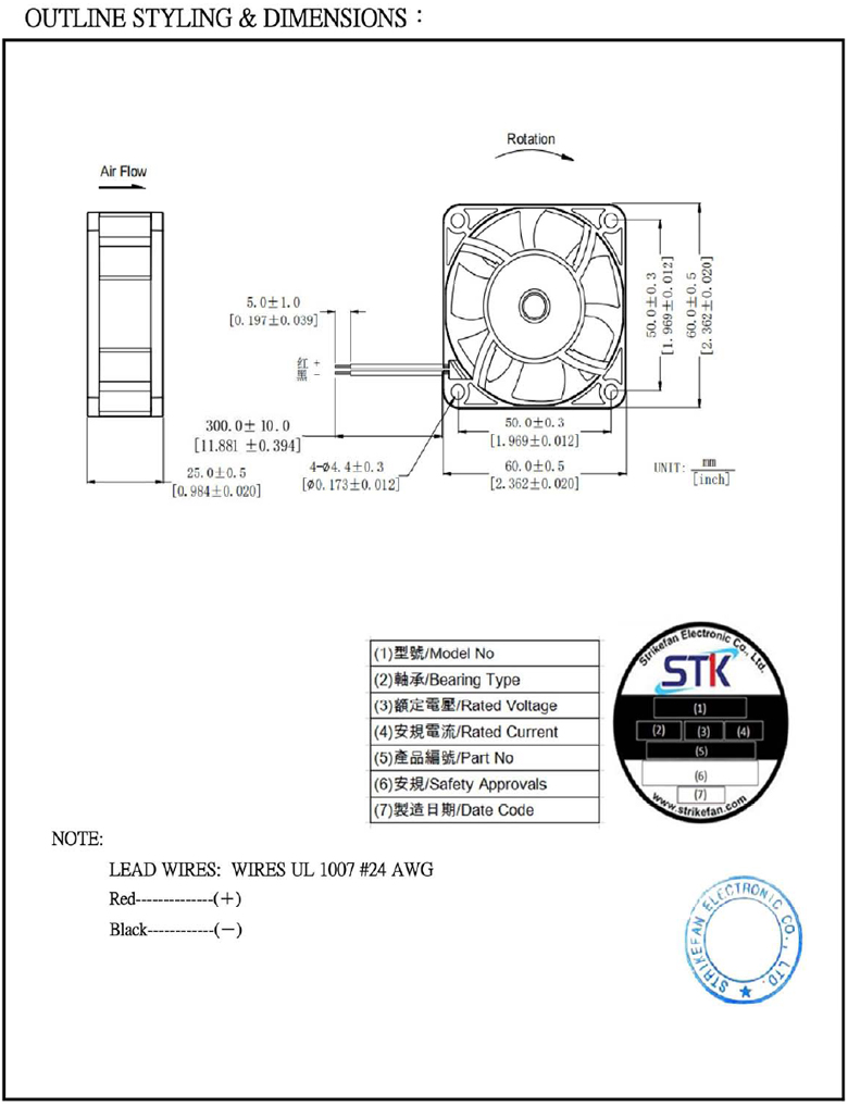 帶線式風扇 DC12V 60*60*25mm