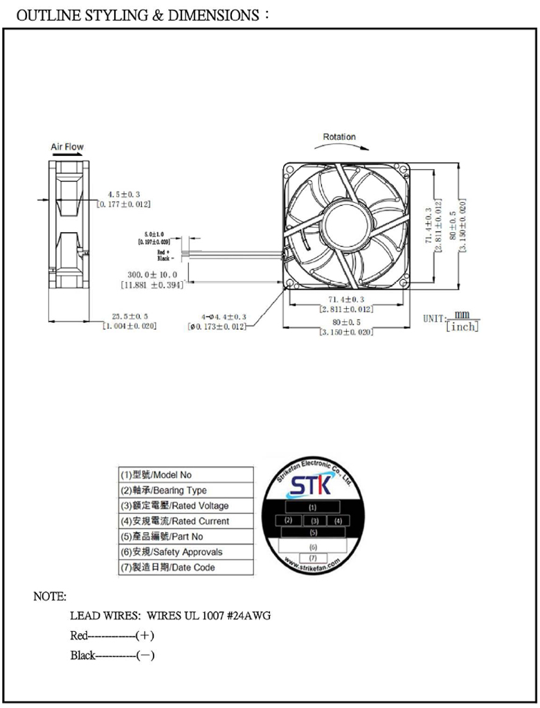 帶線式風扇 DC12V 80*80*25mm