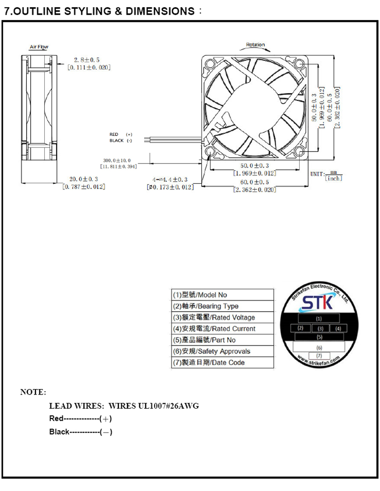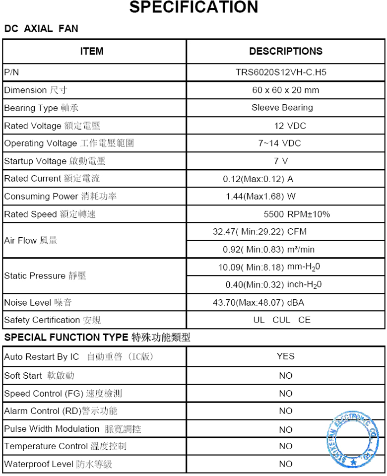 帶線式風扇 DC12V 60*60*20mm