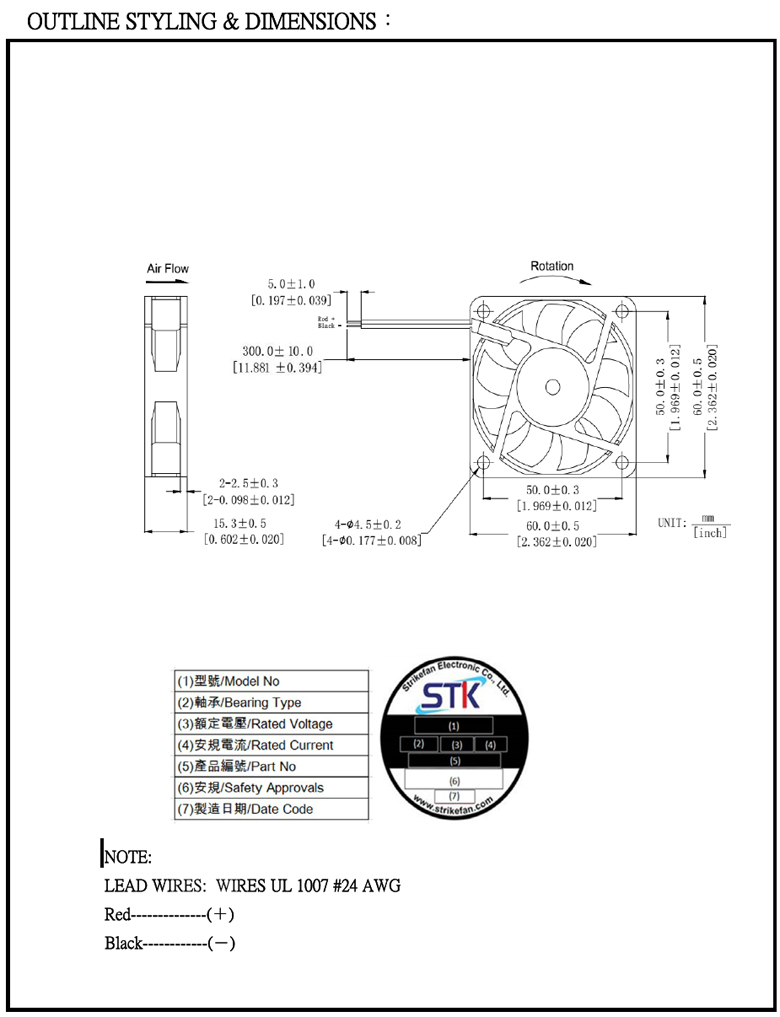 帶線式風扇 DC24V 60*60*15mm