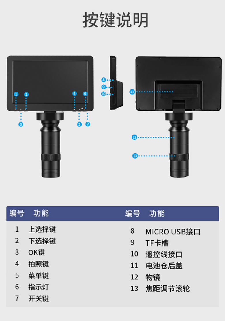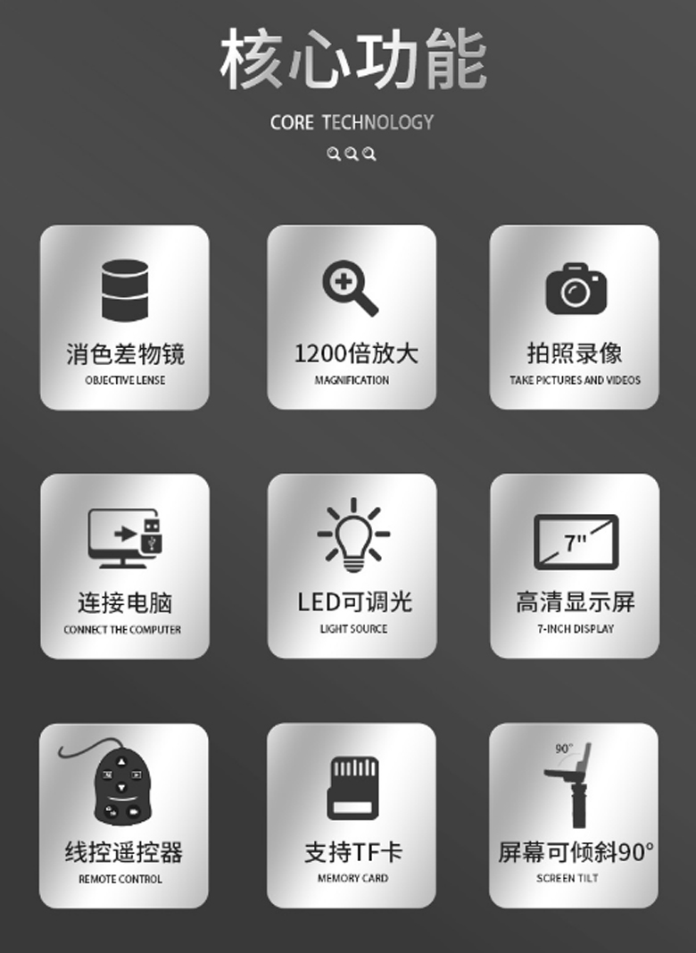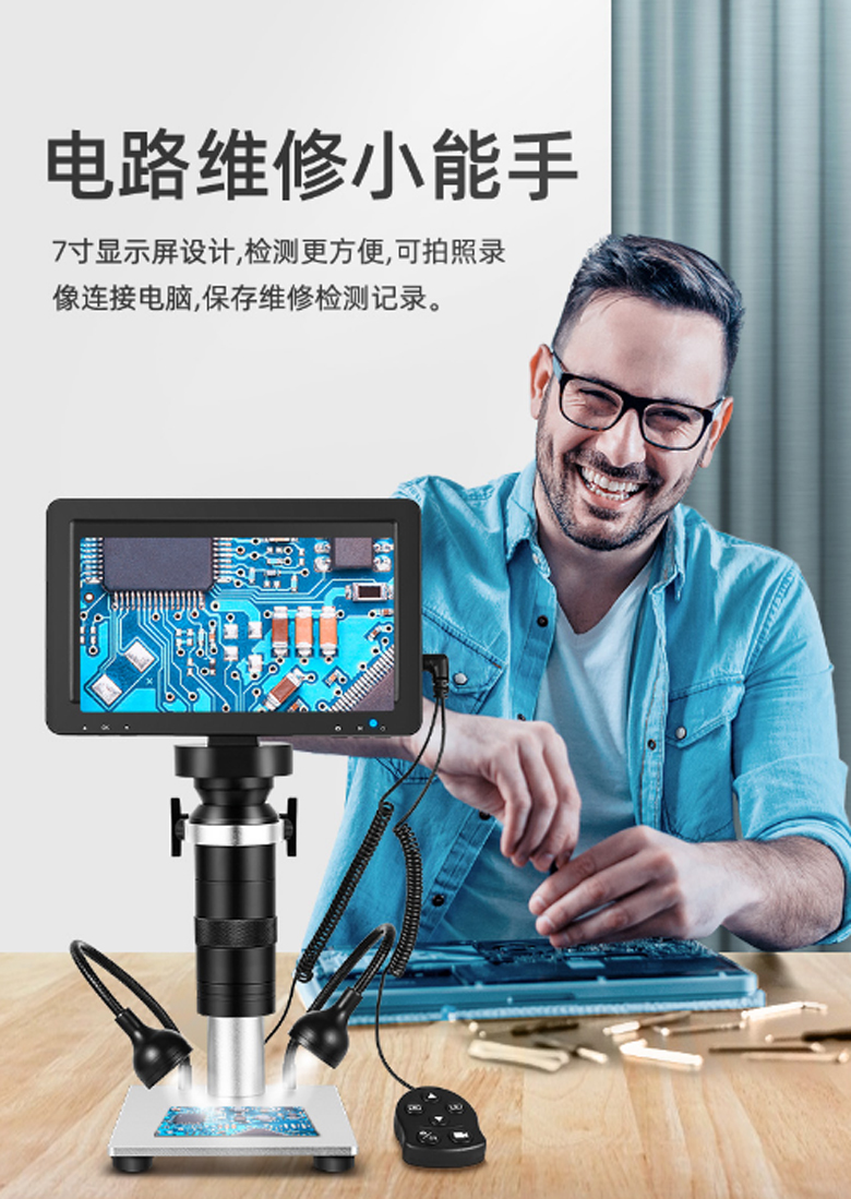 7寸高清1080P USB帶屏1200倍電子數碼顯微鏡
