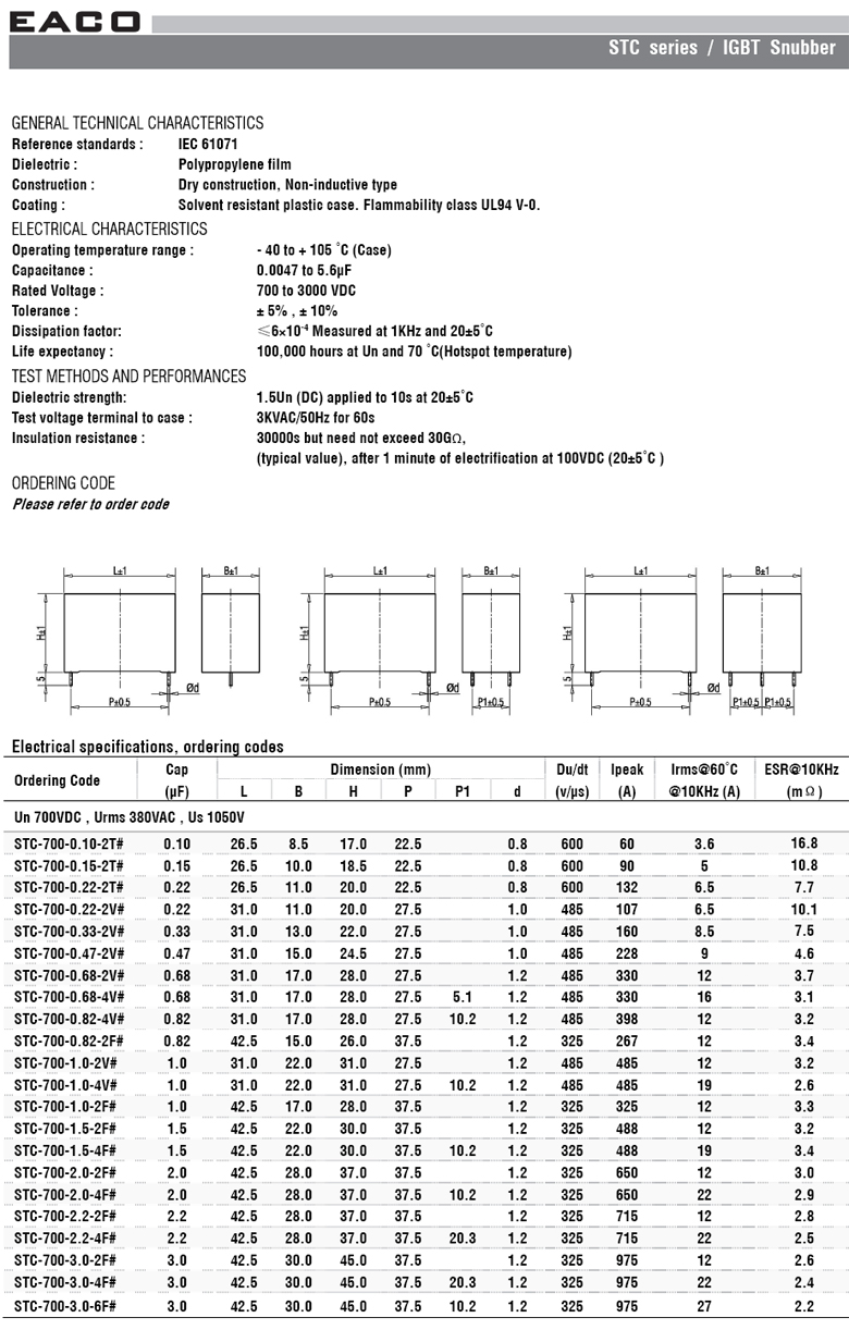 EACO_STC系列 無感IGBT吸收電容