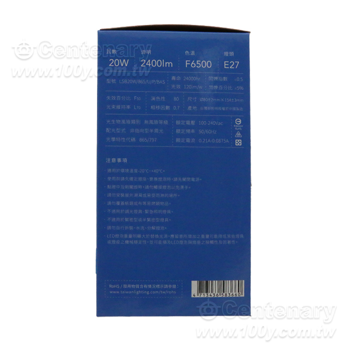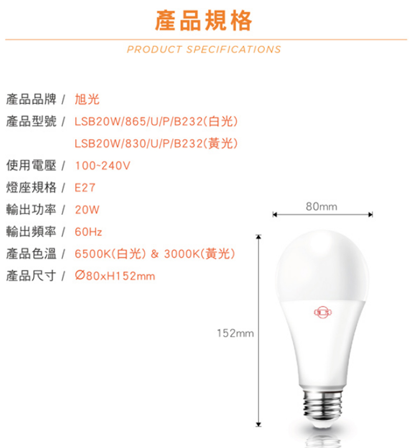旭光_LED球泡燈 E27 20W 白光 6500K