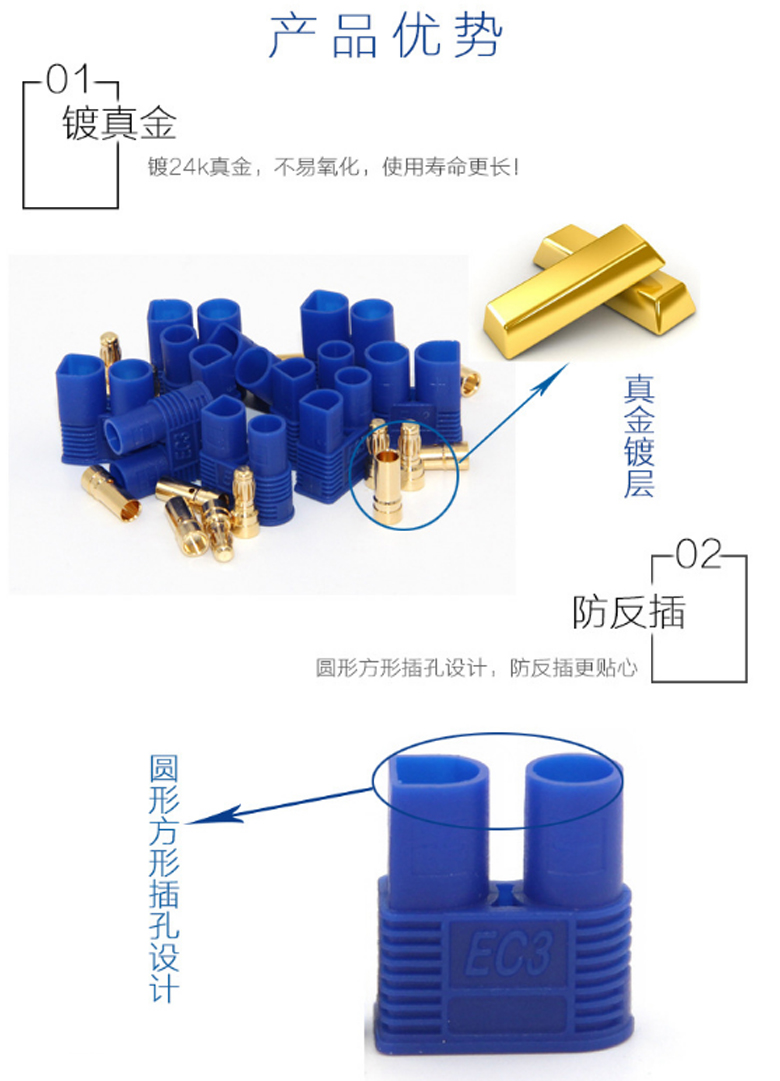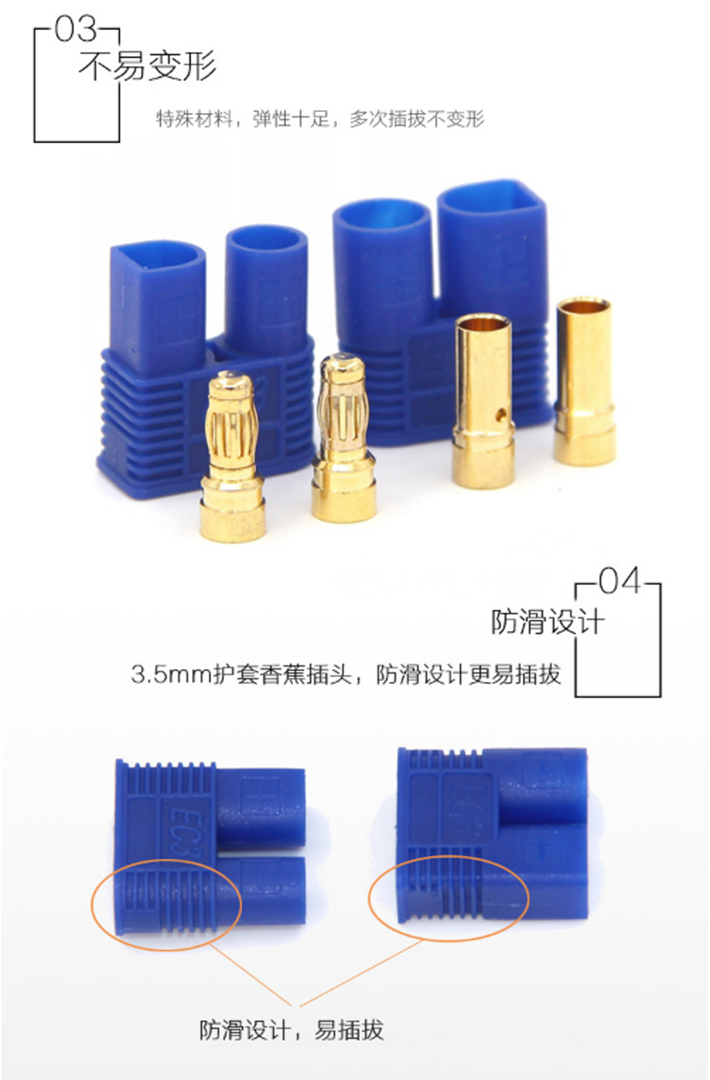 EC3公插頭 3.5mm香蕉頭銅鍍金