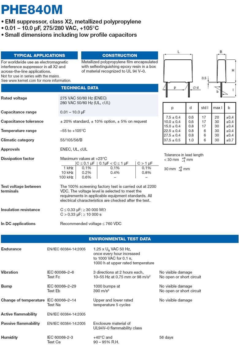 金屬化聚丙烯電容 0.1uF 275VAC P:15mm