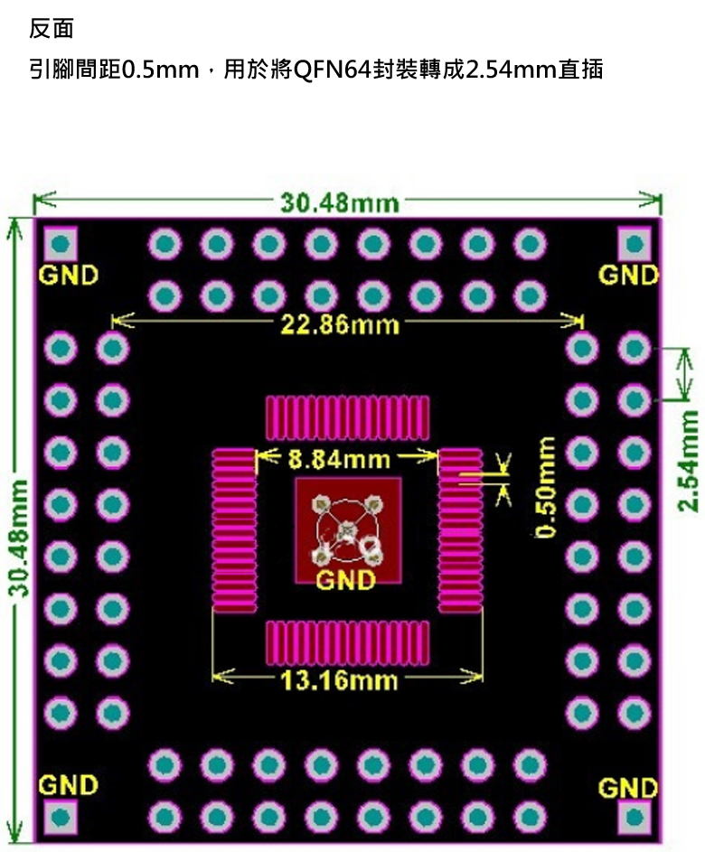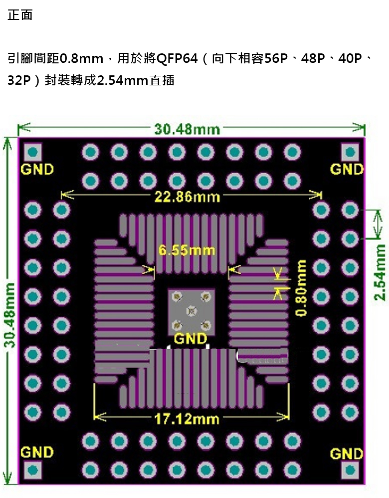QFP64(QFN64)-0.5反面/0.8正面-轉接板-沉金版