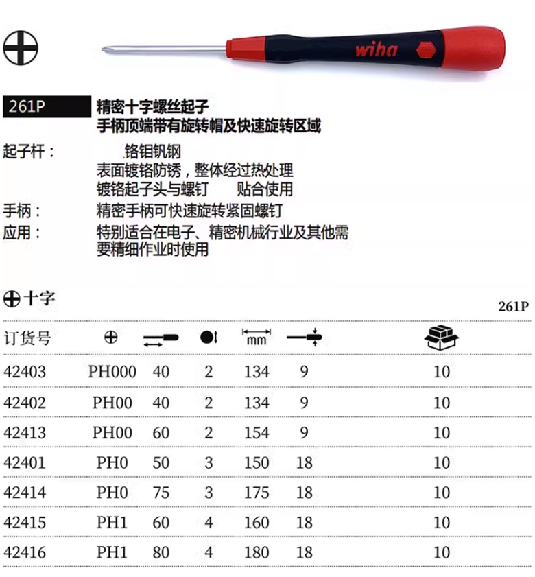 wiha 261P 螺絲批起子帶磁性 十字螺絲刀PH000*40