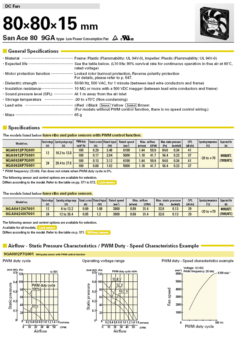 三洋直流風扇 80x80x15mm, 24VDC